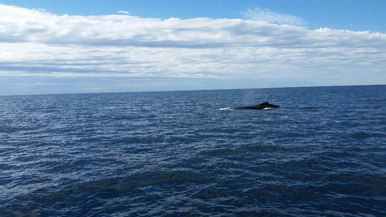 波が穏やかなくじら日和でしたが、くじらはコンスタントに見えるものの、おとなしく何もアクションがないまま時間だけが過ぎていきました。終了時間が迫ってきたそのとき、3頭のあ大きなクジラが現れ、船に何度も何度も大接近!船に興味深々で、ひたすら船の周りをぐるぐる泳いで、中を覗こうとスパイホッピングまで見せてくれました。